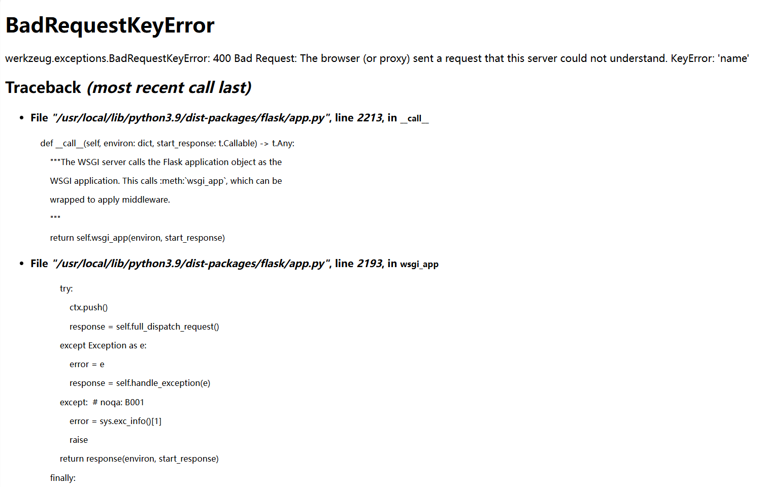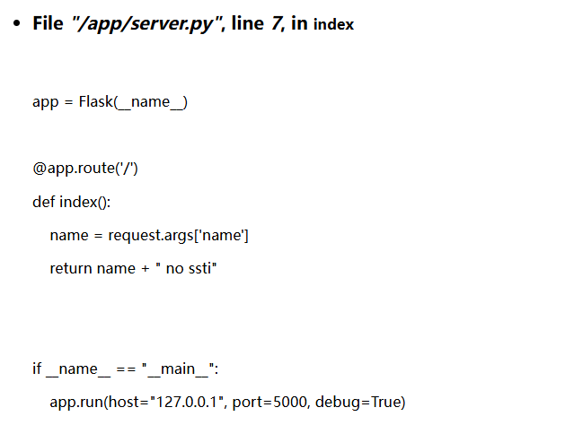 可以看到报的是400错误,也就是缺少name参数,继续分析,在下面可以看到/app/server.py的源码