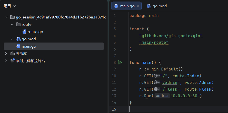 其中NewCookieStore([]byte(os.Getenv("SESSION_KEY")))表示从环境变量中获取SESSION_KEY并转化为字节切片,然后将其作为session的密钥进行签名认证