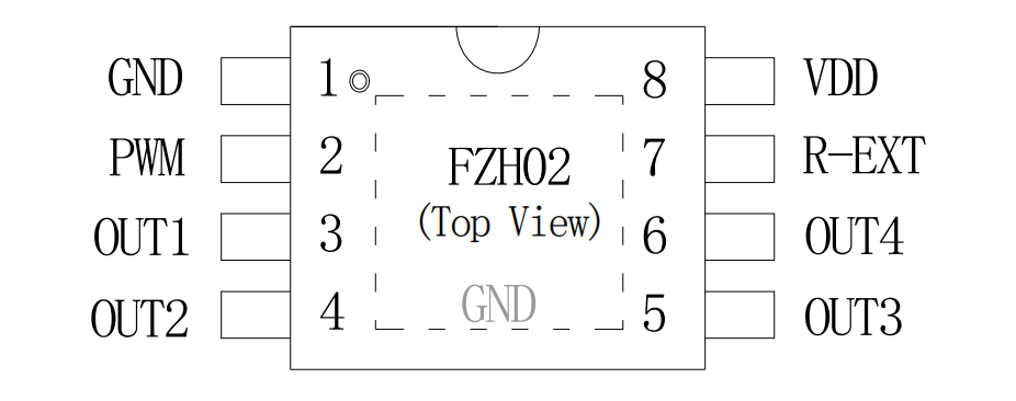 FZH02(深圳市方中禾科技)是恒流LED驱动芯片, 具有 4 个电流源,可以在每个输出端口提供18~90mA恒定电流量以驱动LED,每个OUT驱动通道输出可短接后得到更大的电流输出,且当环境发生变化时,对其输出电流影响很小。同时可以选用不同阻值(REXT)的外接电阻来调整FZH02各输出端口的电流大小,因此,可精确地控制LED的发光亮度,适用于高质量LED显示或照明驱动。本产品性能优良,质量可靠。