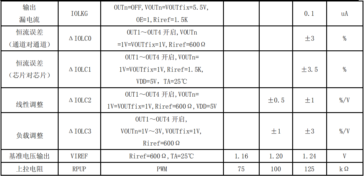 恒流电流范围值,18~90mA@VDD=5V