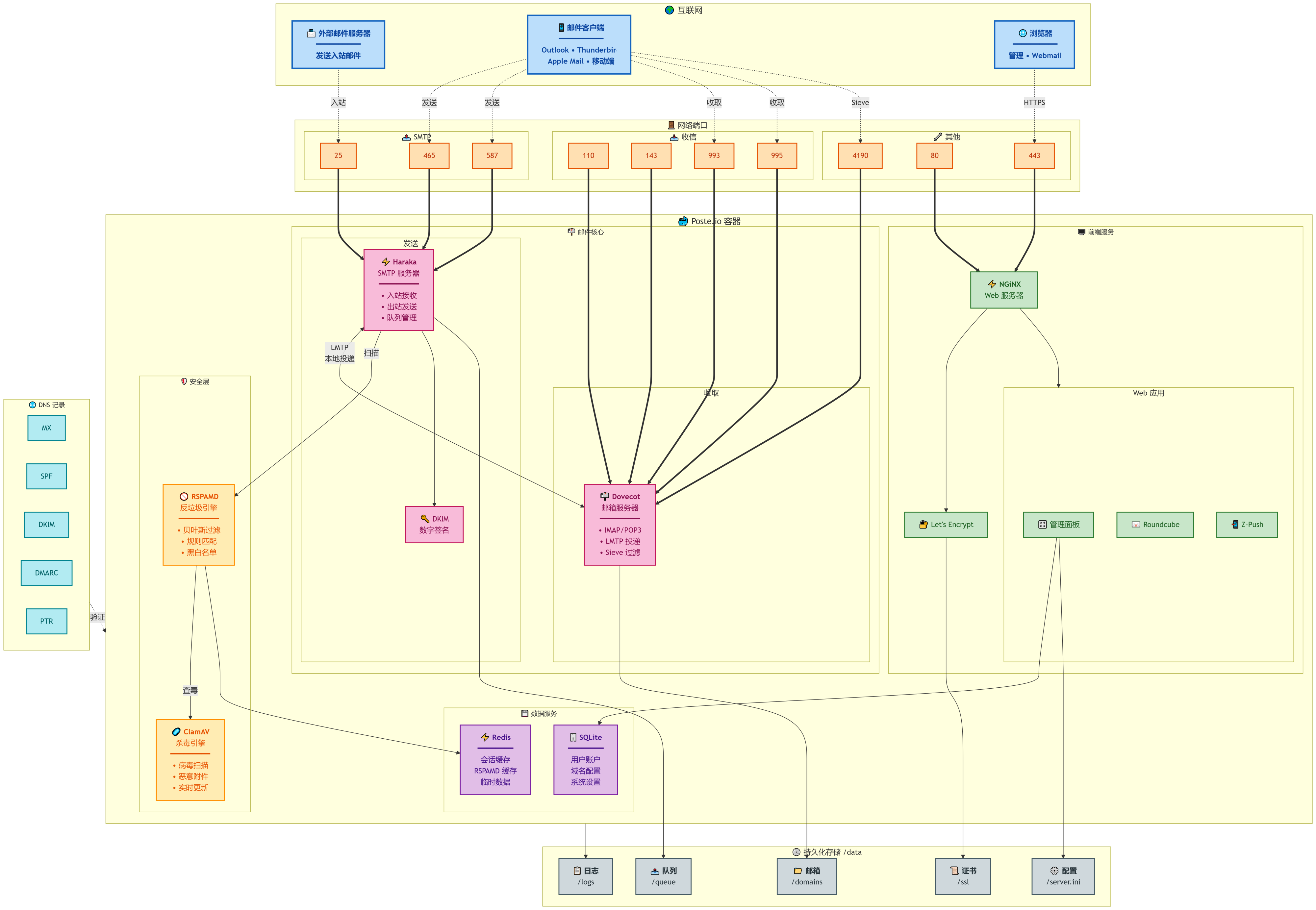 - Poste.io 是一个易于安装和配置的私有邮件服务器解决方案