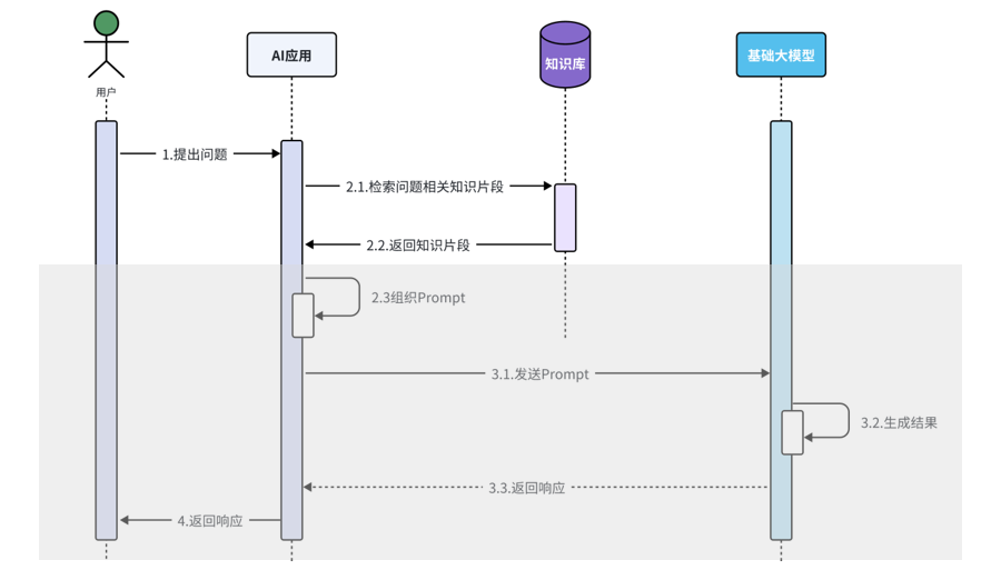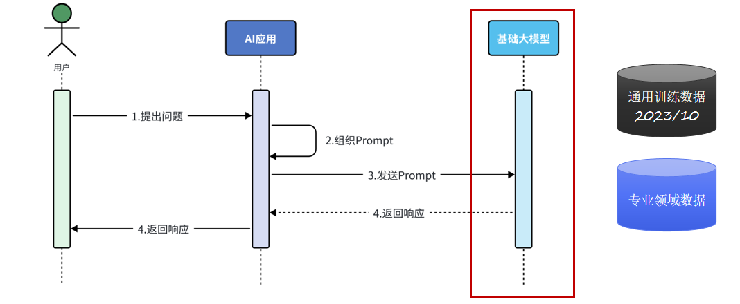 用户向AI应用提交自然语言查询后,AI应用会将查询与工具元信息(含Function名称、功能描述、入参schema)组装为包含工具定义的Prompt,提交至基础大语言模型(LLM);大模型执行任务规划与工具匹配,判定需触发函数调用(Function Call)后,向AI应用返回结构化的函数调用指令(含目标工具标识、参数键值对);AI应用解析指令并触发对应的工具函数(Tool Function)执行,获取工具返回的结构化结果,再将该结果封装为上下文补充至Prompt,发起新一轮Prompt请求;这一"大模型决策调用 → AI应用执行工具 → 结果回传拼接"的多轮交互循环会重复执行,直至大模型判定任务完成;最终大模型结合工具执行结果与自然语言生成能力构造最终回答,通过AI应用回馈给用户。