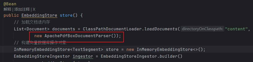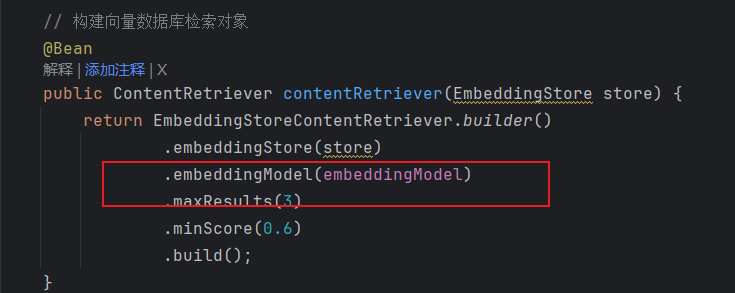 上面是通过配置类构建代理类,接下来还有声明式使用。将配置类里的Bean注释掉,在接口类添加@AiService注解。