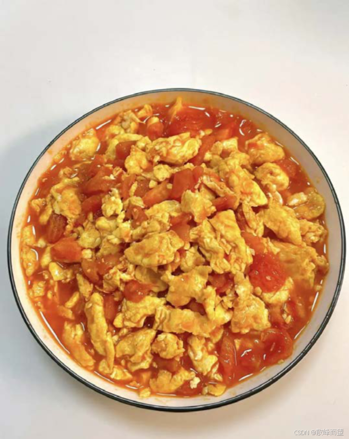 ◦ 第三步:用锅里剩的油炒西红柿,炒出汁后倒入炒好的鸡蛋,加盐翻炒均匀,撒上葱花即可。