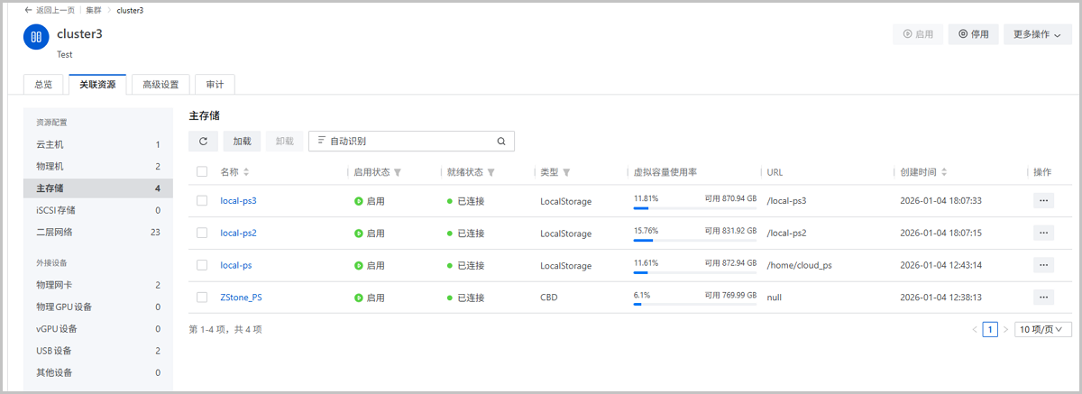 同时,物理机详情页-关联资源、主存储-关联资源开放云主机迁移入口,便于用户直接按所属物理机/主存储发起批量迁移,获取更丰富的运维视角和更便捷的操作体验。