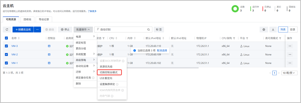 云主机批量切换控制台模式