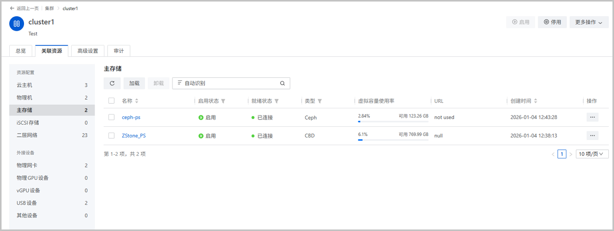 - 1个CBD主存储 + 1个Ceph主存储。