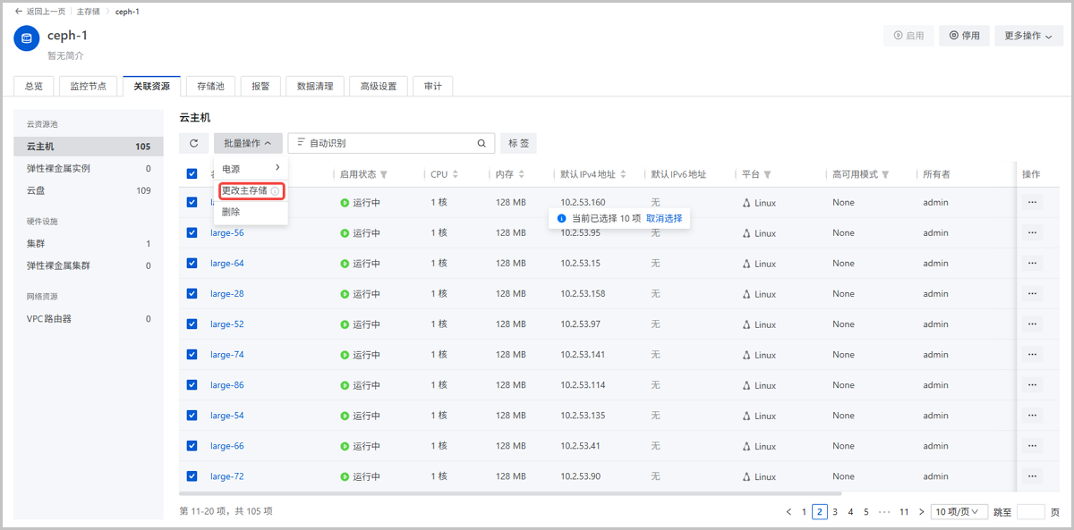 主存储详情页云主机批量迁移操作(更改主存储)
