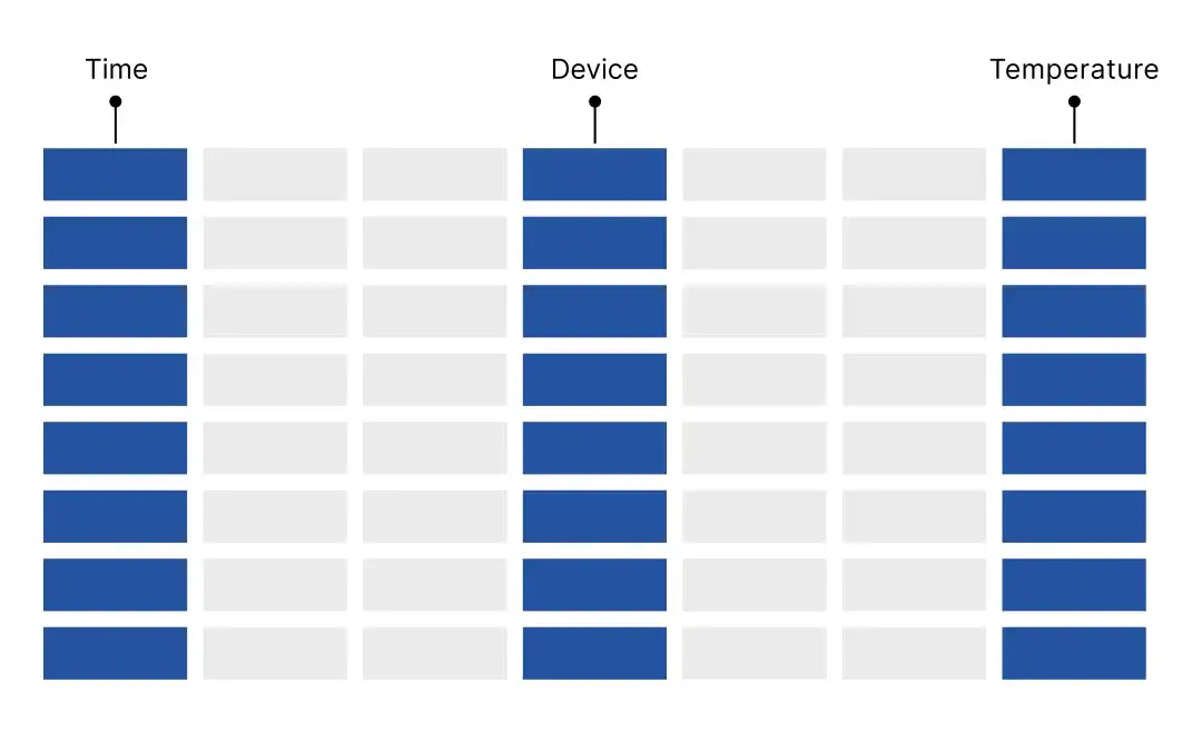 但一旦进入数据分析阶段,如:查过去 24 小时的温度变化趋势、查某指标在 1000 台设备上的分布情况等。即使只关心一列数据,但也需要把整行数据读出,这会产生大量无效 IO,成为时序分析场景中最常见的性能杀手。