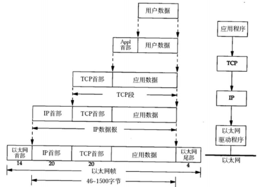 - 应用层数据通过协议栈发到网络上时,每层协议都要加上一个数据首部(header),称为封装(Encapsulation).