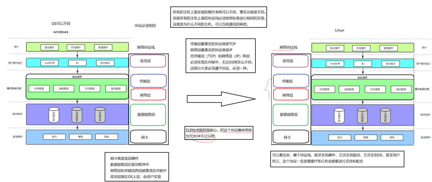 TCP/IP 协议与操作系统的关系(宏观上,怎么实现的)