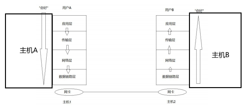 在网络传输的过程中,数据不是直接发送给对方主机的,而是先要自定向下将数据交付给下层协议,最后由底层发送,然后由对方主机的底层来进行接受,在自底向上进行向上交付。