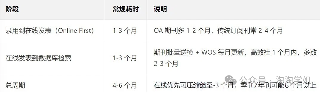 SCI论文检索周期大致受上述因素影响,但其中要么是客观原因,这些在前期选刊时即可避免;要么是小概率事件,作者遇到的可能性很小,所以只要避开预警期刊,基本可以忽略。