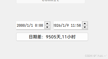 ui->pushButton->setText("日期差:"+QString::fromStdString(std::to_string(days)+"天,"+std::to_string(hours)+"小时"));
