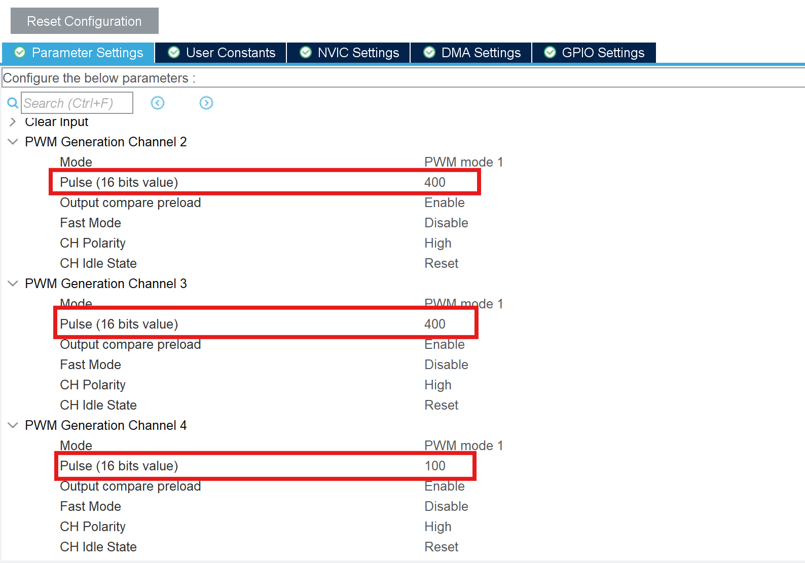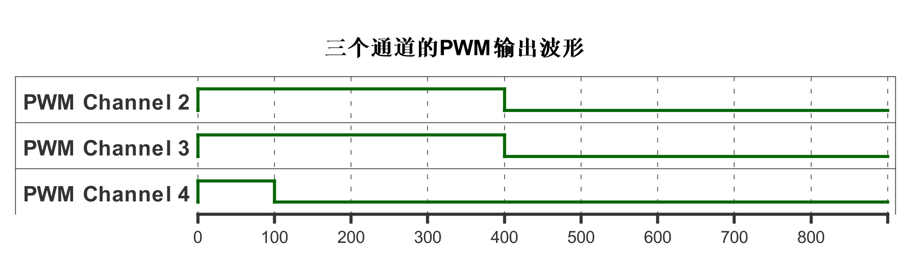 - PWM Generation Channel 3: Pulse=400(对应100us的高电平时间,传感器2使能)