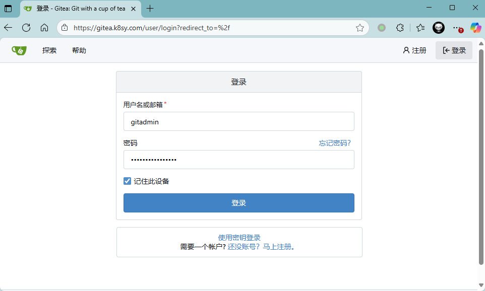 gitea nginx gitea.k8sy.com 10.20.173.226 80, 443 2m59s