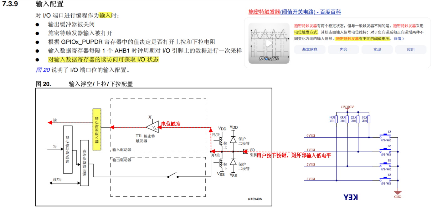 - 按键未按下时:IO口被上拉电阻拉为高电平;