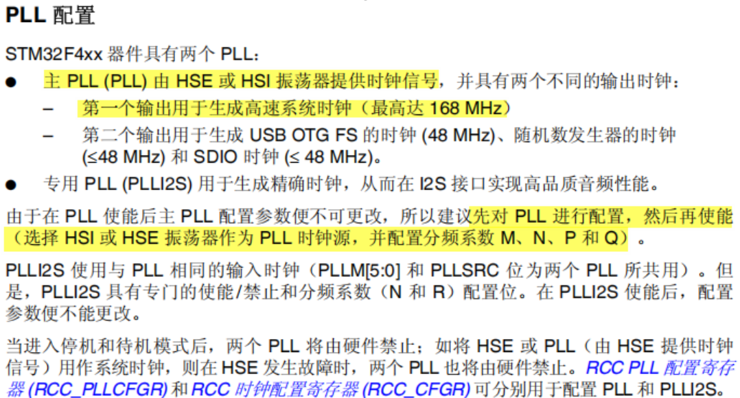 系统时钟(SYSCLK)通过PLL倍频生成,核心参数包括PLL_M(分频系数)、PLL_N(倍频系数)、PLL_P(分频系数):