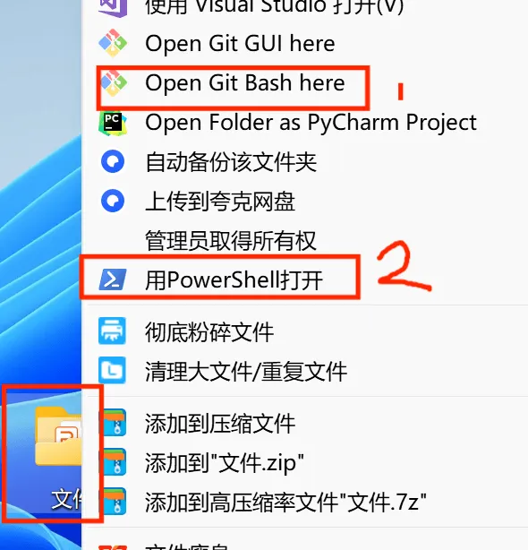选择你要上传的文件,右键选择Git打开,或者终端,输入此命令。(后续命令都是如此)