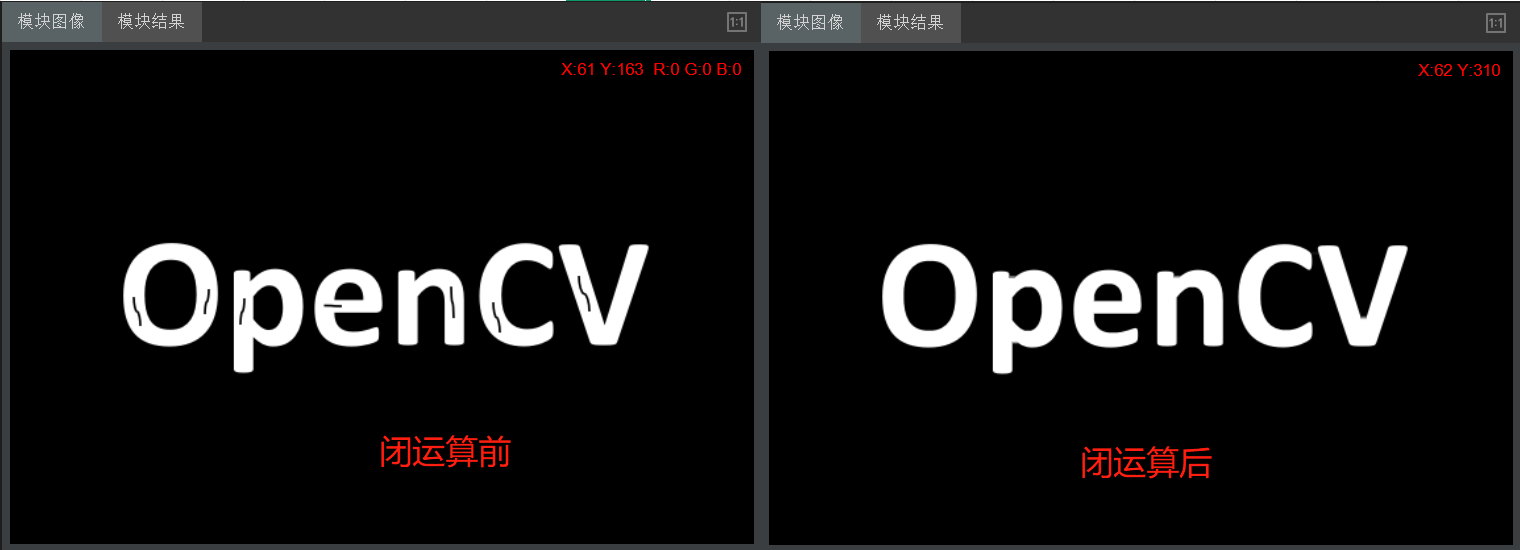 闭运算后,白色区域中的黑色区域消失,效果如下。