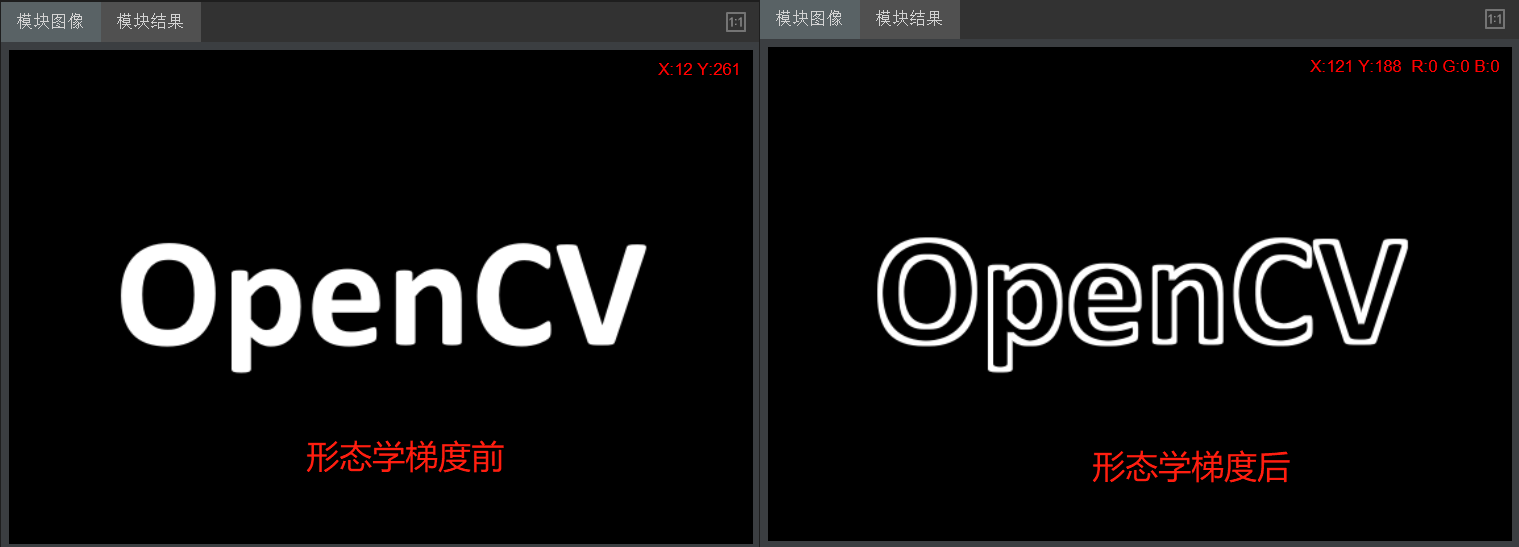 形态学梯度=原图-腐蚀,腐蚀运算后,白色区域变小,原图白色区域减腐蚀后的白色区域,得到腐蚀掉的部分,即边缘。