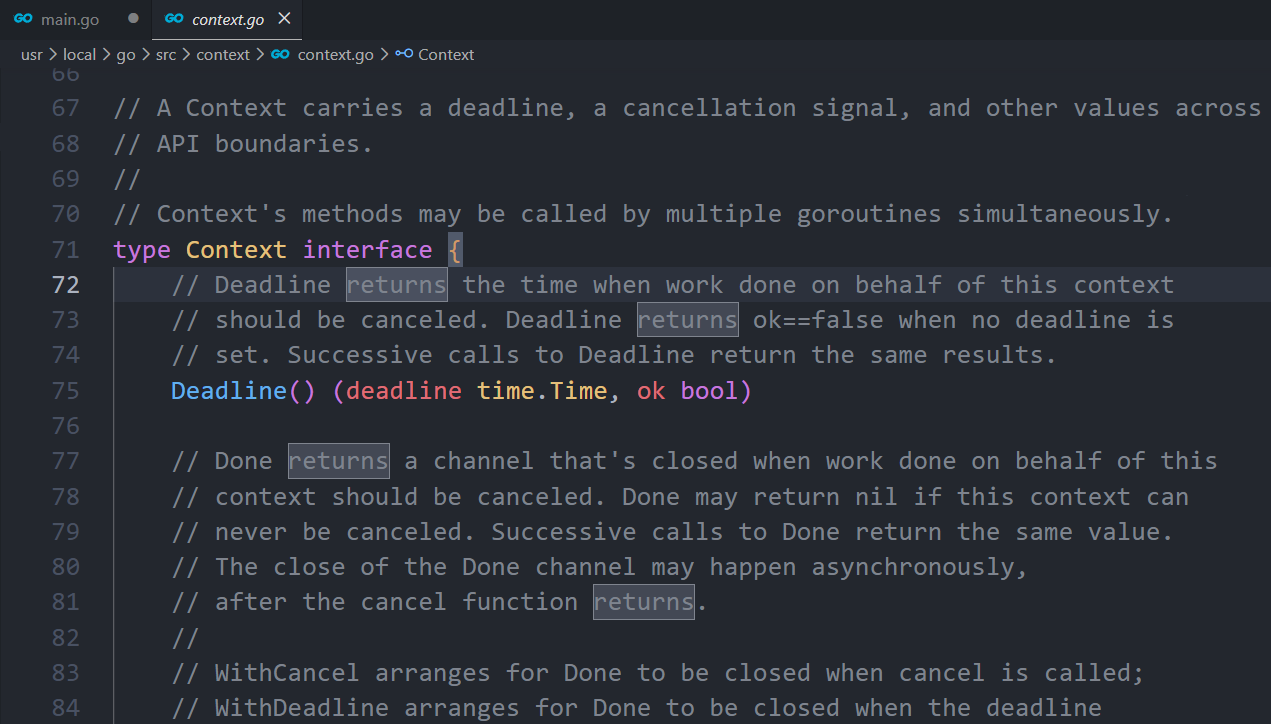 简单来说, context是Go 语言在 1.7 版本中引入的一个标准库的接口,其定义如下