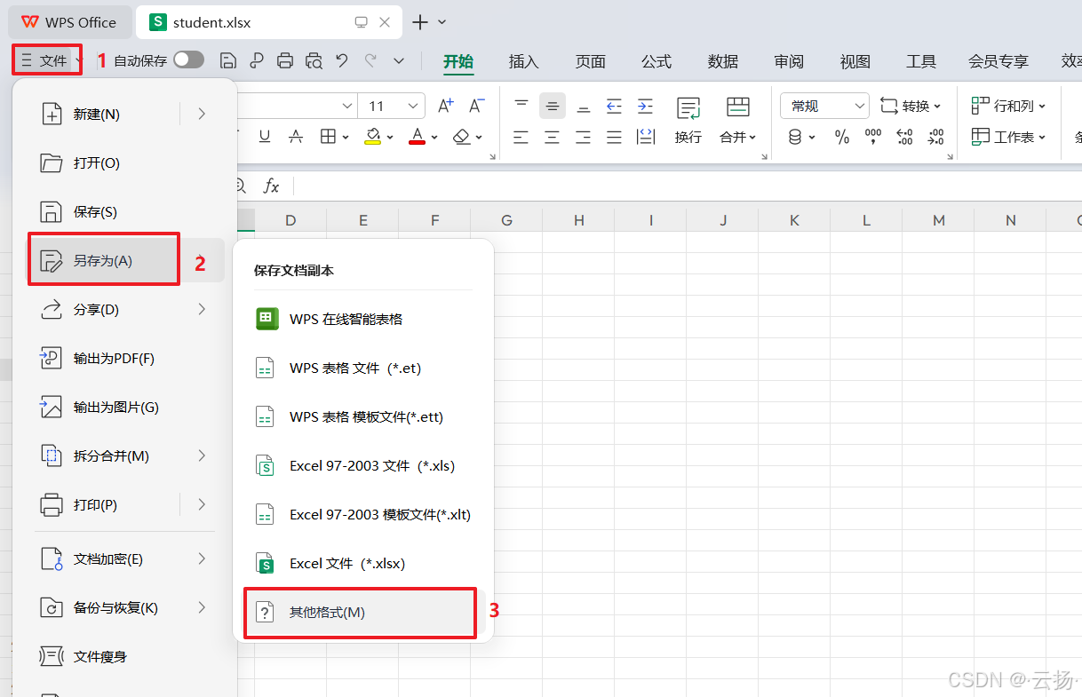 - 点击顶部「文件」选项卡,选择「另存为」;