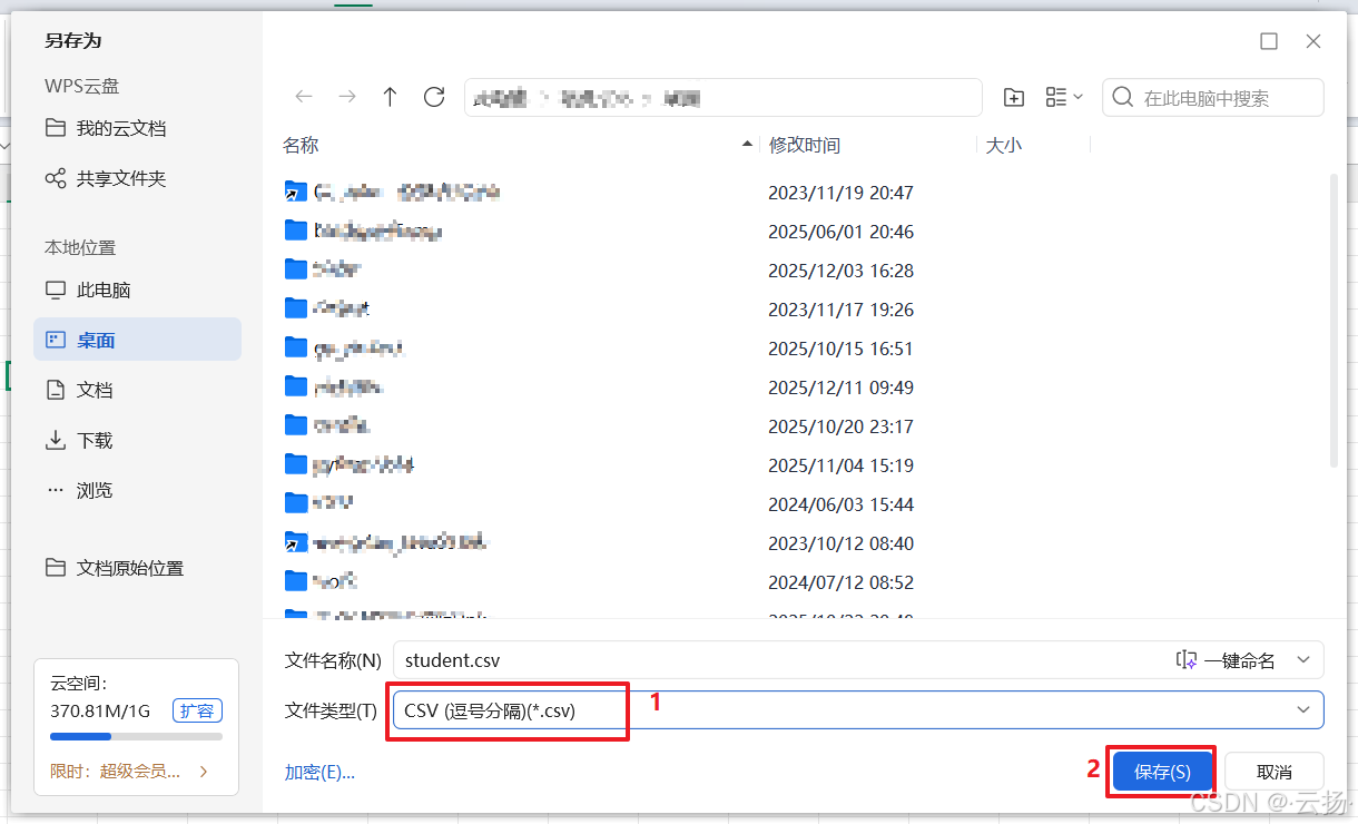 - 「保存类型」下拉框中,选择「CSV(逗号分隔)(*.csv)」;