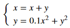 f = @(x) [x(1)+x(3); x(2)+x(4); x(3); x(4)]; % 状态转移函数