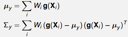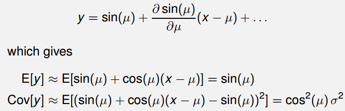 对非线性变换 Y = g ( X ) \boldsymbol{Y}=\boldsymbol{g}(\boldsymbol{X}) Y=g(X),变换后随机向量的数学期望与协方差可通过如下公式完成近似计算: