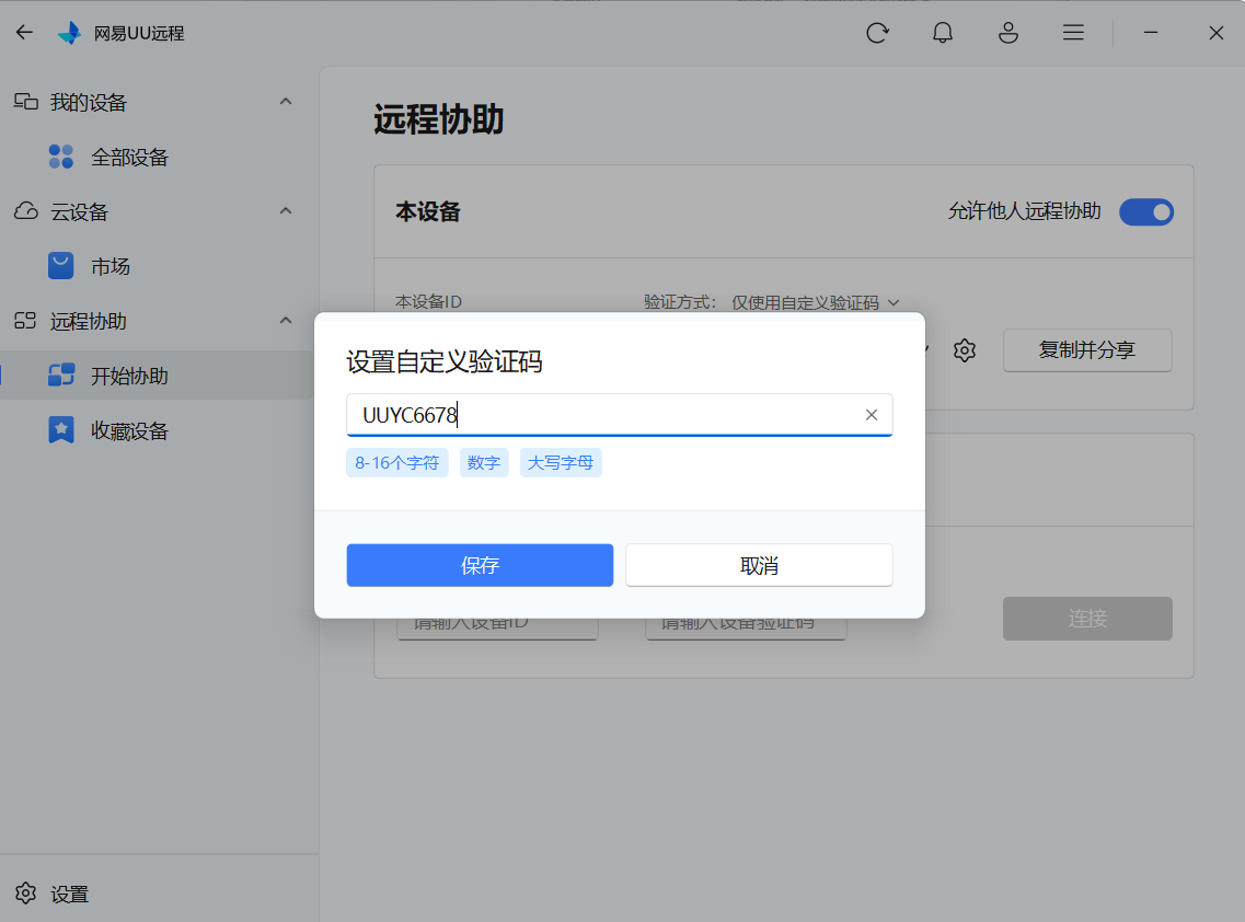 远程协助验证码专属自定义设置:针对远程协助高频场景,支持8-16位数字+字母的组合形式自由配置,用户可根据使用场景灵活选择长度,高安全需求场景可选用16位复杂组合。这种自定义模式打破了传统固定格式验证码的限制,既能通过个性化组合降低熟悉人群的记忆成本,又能凭借长度与字符组合提升安全防护等级。