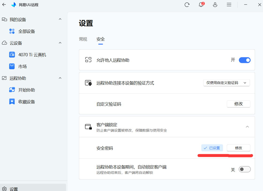 针对远程协助场景的安全问题,新增了"客户端安全锁"的功能。开启自动锁定后,远程协助一开始就会自动锁上客户端,从根本上避免协助过程中出现误退出、参数被改的麻烦。最大的好处就是专门针对远程协助做防护,而且自动锁定不用手动操作,彻底解决了以前远程协助时,客户端容易被不小心关掉、里面的设置参数被乱改的问题,让远程协助又安全又省心。
