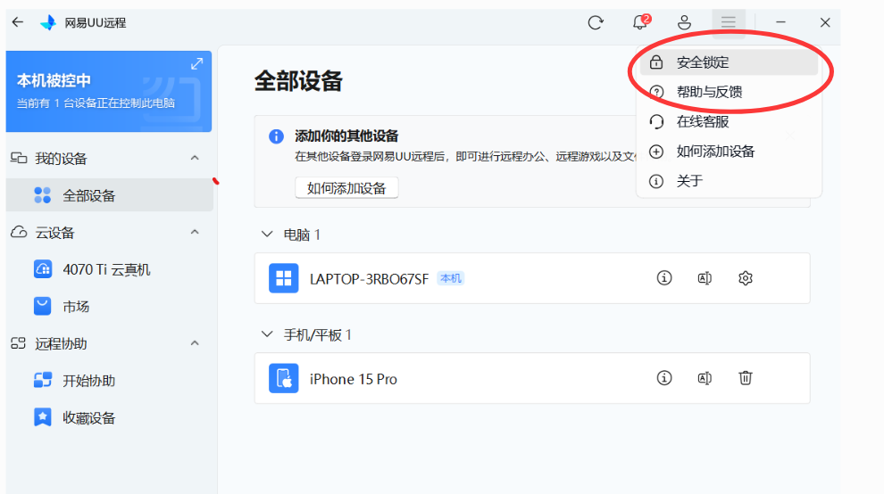 启用后双方都无法访问该主机上的UU远程,并且无法主动退出,必须将客户端解锁后才能进行退出
