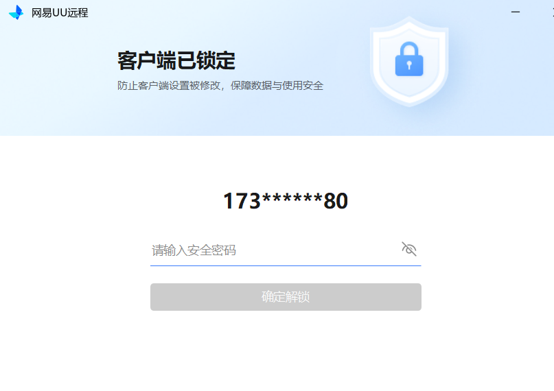 当我们在办公远程求助处理电脑问题时,中途临时外出买东西、取快递,只需开启 UU 远程客户端安全锁的自动锁定模式,就能在不中断远程协助的前提下,仅锁定 UU 远程软件本身 ------ 既能防止协助方误操作退出软件,又能杜绝软件内部核心参数被查看或修改,同时完全不影响电脑上其他软件的正常运行;等你外出回来输入安全密码即可解锁,既不耽误问题处理,又能稳稳守住隐私,完全不用操心外出期间的信息泄露风险。