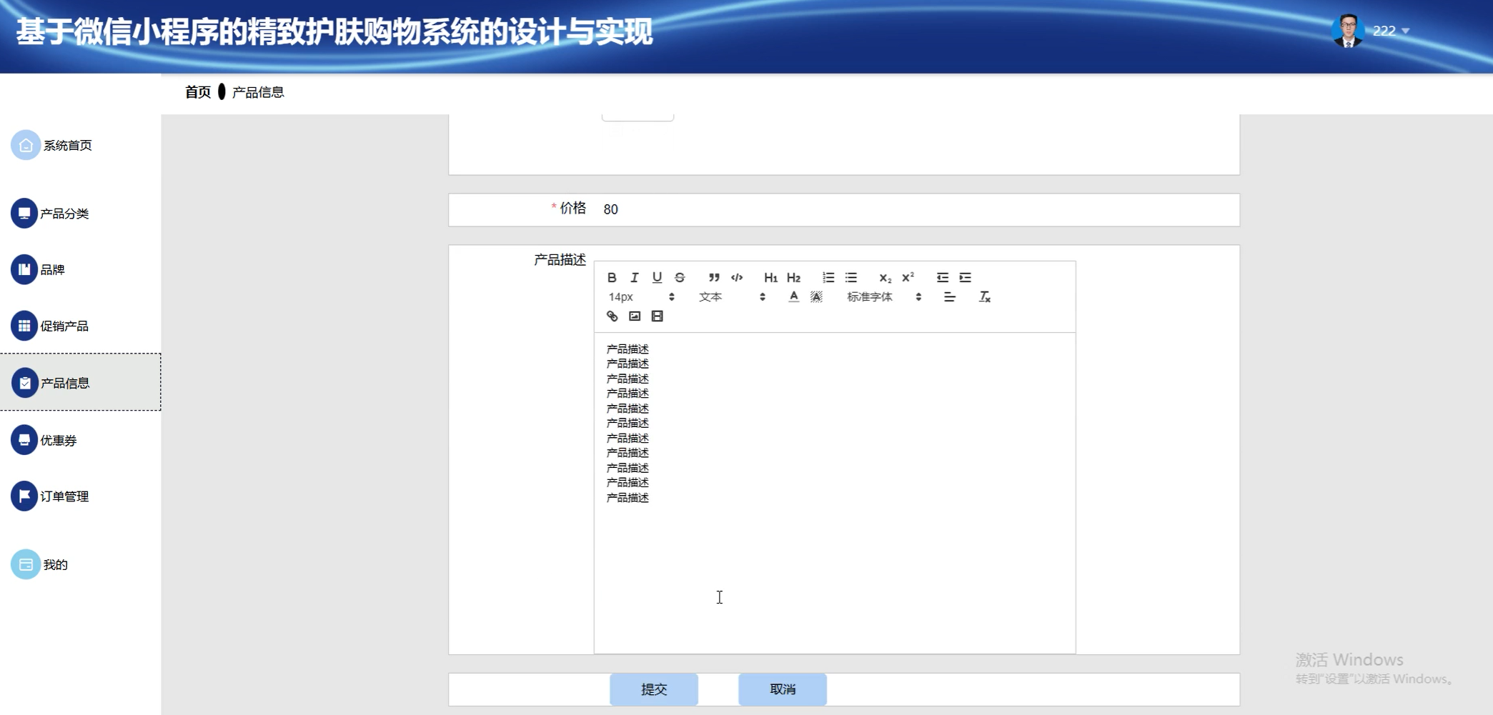 产品信息管理页面