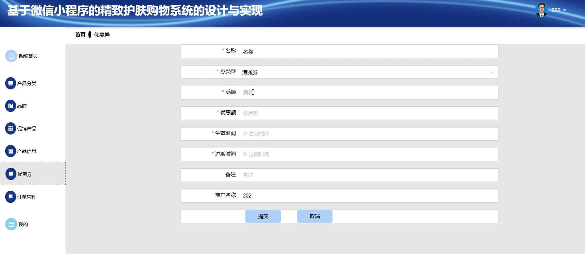 优惠券管理页面