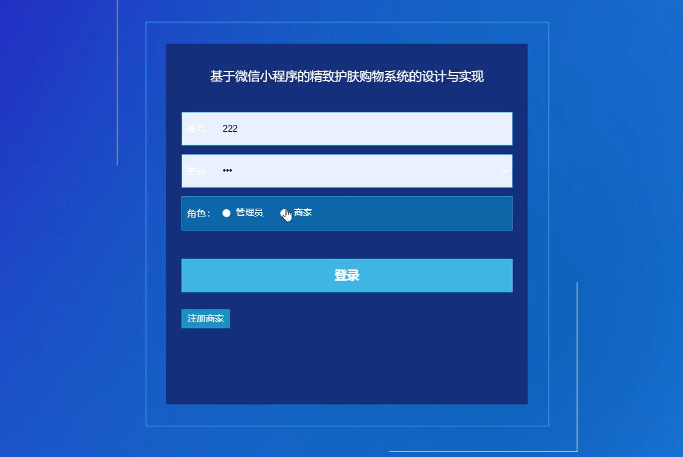 三个角色(管理员,用户,商家)