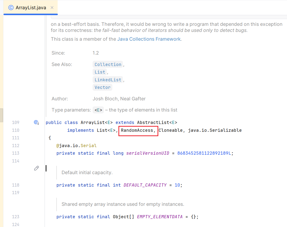 在 Java 中,实现 RandomAccess 接口的容器具备了这个特点。