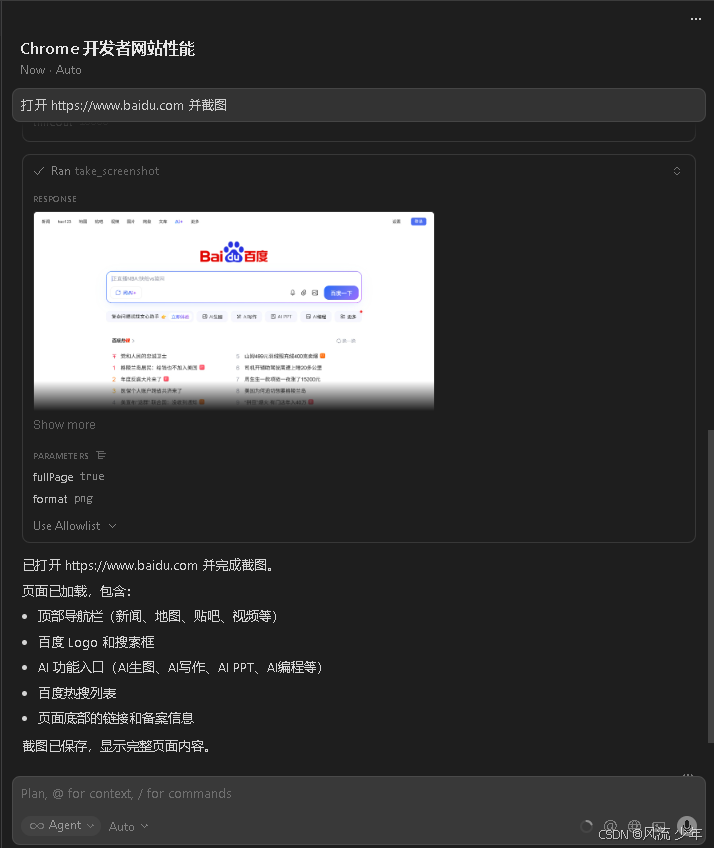 关键步骤使用 take_screenshot 记录