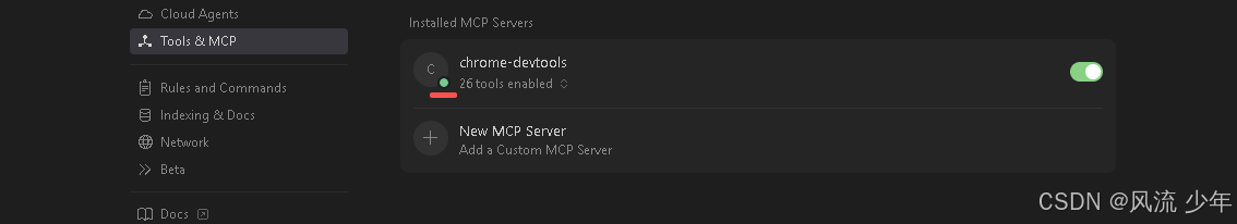 配置完成后重启一下Cursor,绿色表示MCP可用。