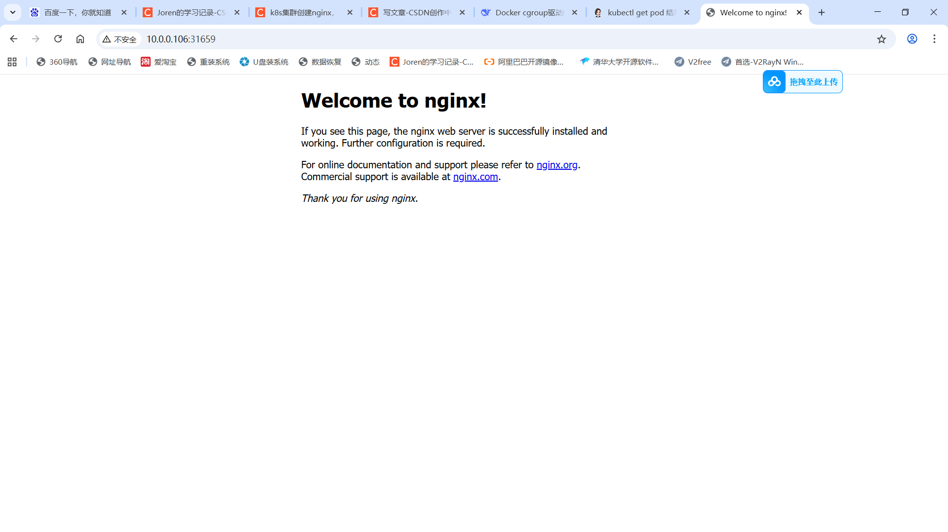 nginx NodePort 10.101.244.208 <none> 80:31659/TCP 9s