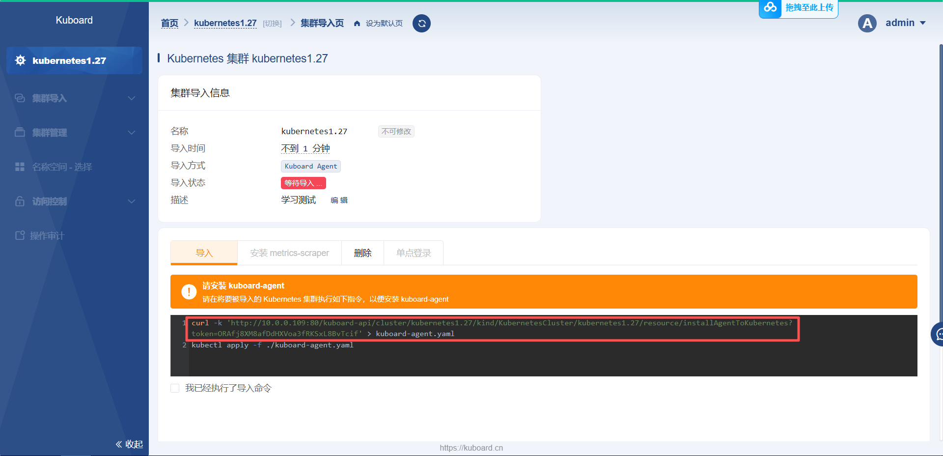 [root@master01 ~]#kubectl apply -f kuboard-agent.yaml