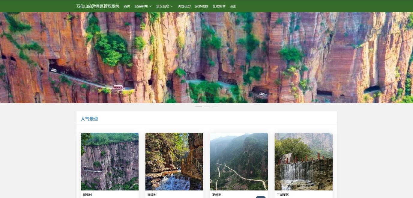 该系统可以实现游客查询旅游景点、路线信息、美食信息、旅游攻略。系统管理员对系统用户、订单业务、页面展示内容进行管理,并依据数据分析结果及时调整管理策略。系统工作稳定、操作简单、维护方便。能够实现在线的管理和预定操作,减少管理人工时间成本支出,提高旅游管理效率,方便旅游业的发展。