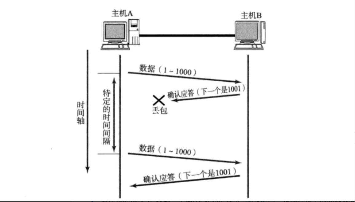 如果此时出现了丢包现象,是如何进行重传的呢?此时会分为两种情况