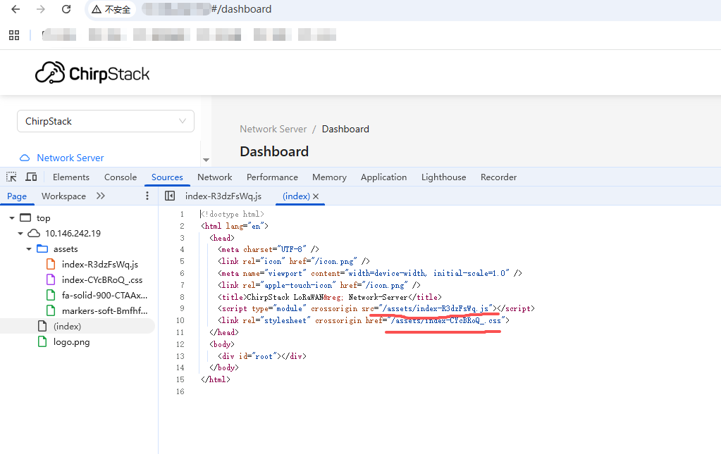 ChirpStack部署后访问发现它的js,css都是居于根节点的,如下图