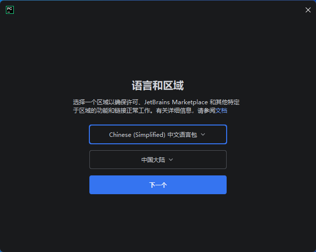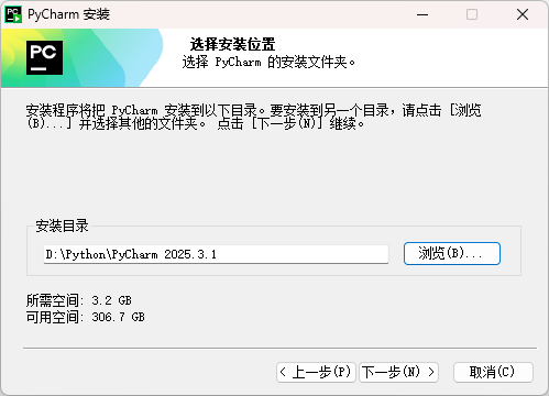 双击运行下载好的pycharm-2025.3.1.exe,点击"下一步"
