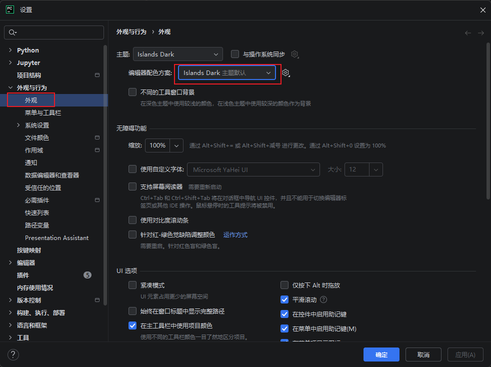 外观设置,可以设置自己喜欢的主题
