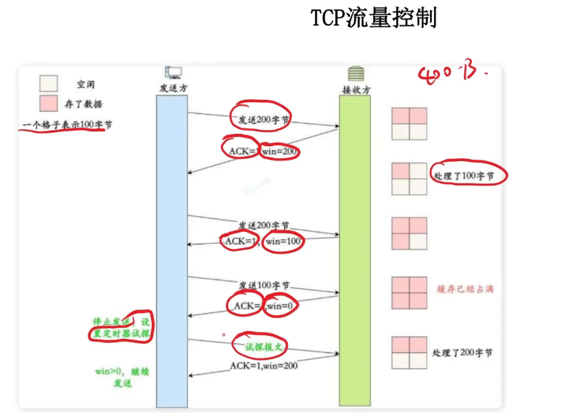 rwnd = 0,发送方暂停发送(进入"零窗口"状态)