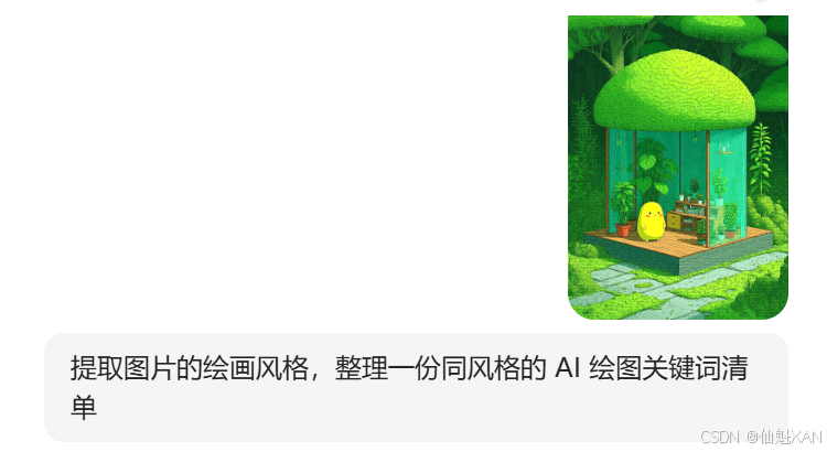 1、获取这种森林治愈系的图片,可以然豆包分析提取图片的绘画风格